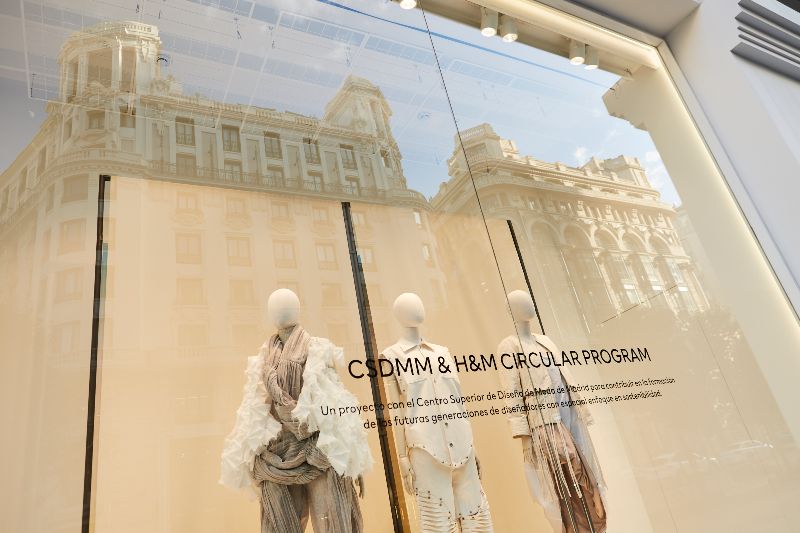 Hasta el 26 de junio, en el escaparate de la tienda de H&M en la Gran Vía de Madrid estarán expuestos tres diseños de las alumnas del proyecto CSDMM & H&M Circular Program.
