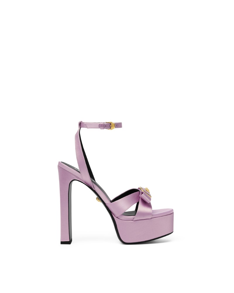 Versace causó locura con sus cuñas de tacón alto que vimos en la película de Barbie. Y parece ser que ese estilo seguirá siendo una de las tendencias fuertes de cara a este 2025. Pero claro, algo tan llamativo no puede mantenerse tanto tiempo como trend, por eso nos llega una versión más refinada del estilo. Sí, estas cuñas son igual de altas y pronunciadas que las que se volvieron virales, pero tienen una silueta mucho más fina y delicada. Pero no por eso rayan en lo simple, sino todo lo contrario. Este nuevo modelo se acentúa con una construcción de tiras en el talón y un lazo en el empeine, decorado con un medallón de la Medusa.