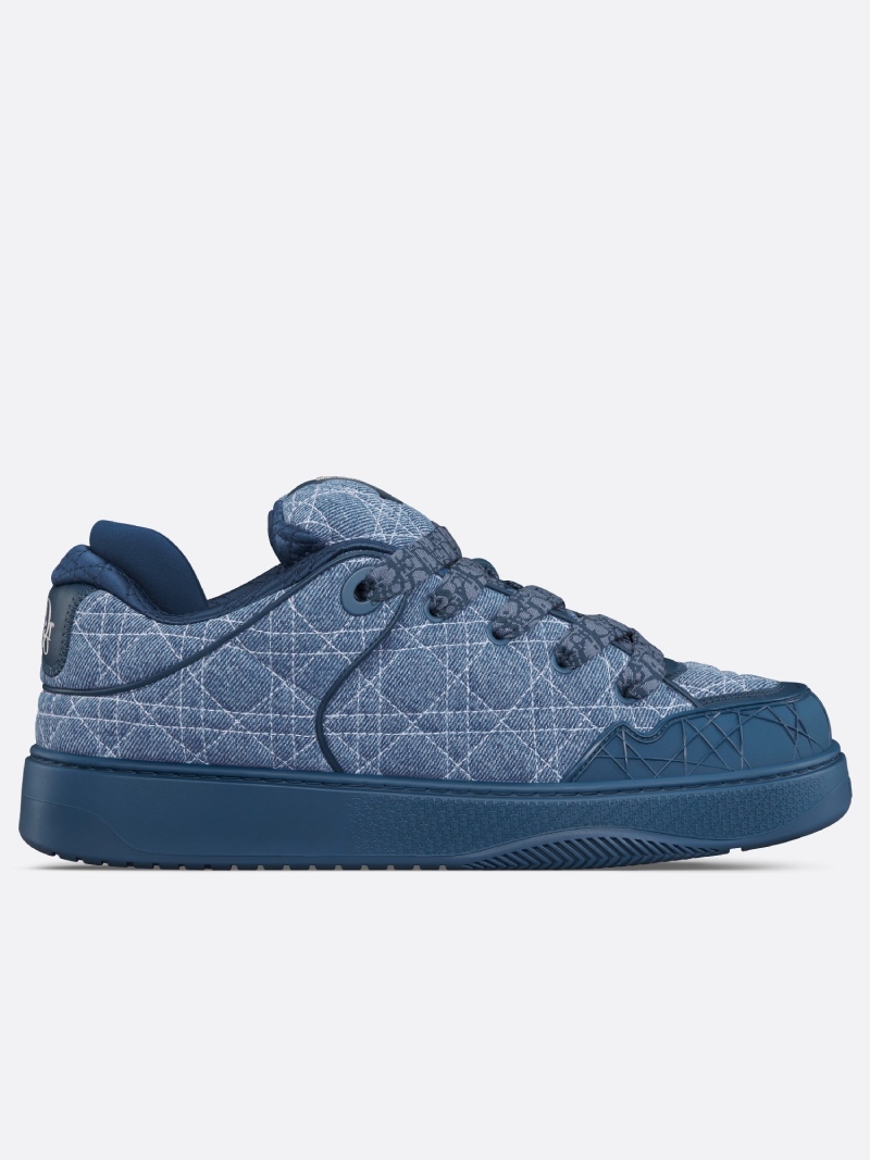 Empezamos nuestro conteo de las mejores zapatillas de tendencia skater con un favorito nuestro, heredero del terreno high street de Kim Jones para Dior Homme. El modelo B9S tuvo un debut como silueta colaborativa junto a ERL, pero ahora se ha convertido en un modelo solitario de la maison y viene en colorways y materiales increíbles, y claro, ese ADN chunky, voluminoso y acolchado no se deja de lado. Esta versión se construye con un upper de tela vaquera de lavado claro con costuras a contraste de Cannage. Reforzando ese look acolchado de la lengüeta, tenemos también un panel acolchado para nuestro talón. La puntera se refuerza con un panel engomado (también con Cannage) y la talonera lleva el logo de la maison. Los cordones, extra gruesos, se decoran con motivos del Dior Oblique tonales y todo reposa sobre una suela gruesa de goma, en azul marino para no romper con la paleta.