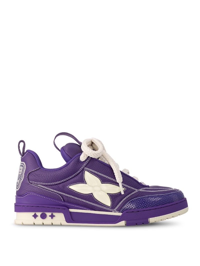 El tenure de Virgil Abloh como predecesor de Pharrell dio mucho de qué hablar, especialmente en el terreno de las sneakers. Y, pese a que su silueta más icónica fueron las LV Trainer, él también hizo una de las mejores zapatillas de tendencia skater que podemos fichar. Estas son las LV Skate y recodifican todos los códigos de las siluetas de los 90 y los 2000 con un aire más vanguardista y moderno. La silueta chunky se mantiene, pero ahora el upper se reimagina con una flor del Monogram dinámica como punto central. Esta versión se hace con piel de becerro granulada en morado intenso, y se decora con detalles en blanco y un parche engomado en la talonera. A juego, Siguiendo el colorway, nos encontramos un refuerzo en la puntera con motivo LV Monogram y diseños del mismo estampado en su mediasuela chunky. Rematando el look, los cordones se presentan exageradamente gruesos, para acentuar más el look urbano.
