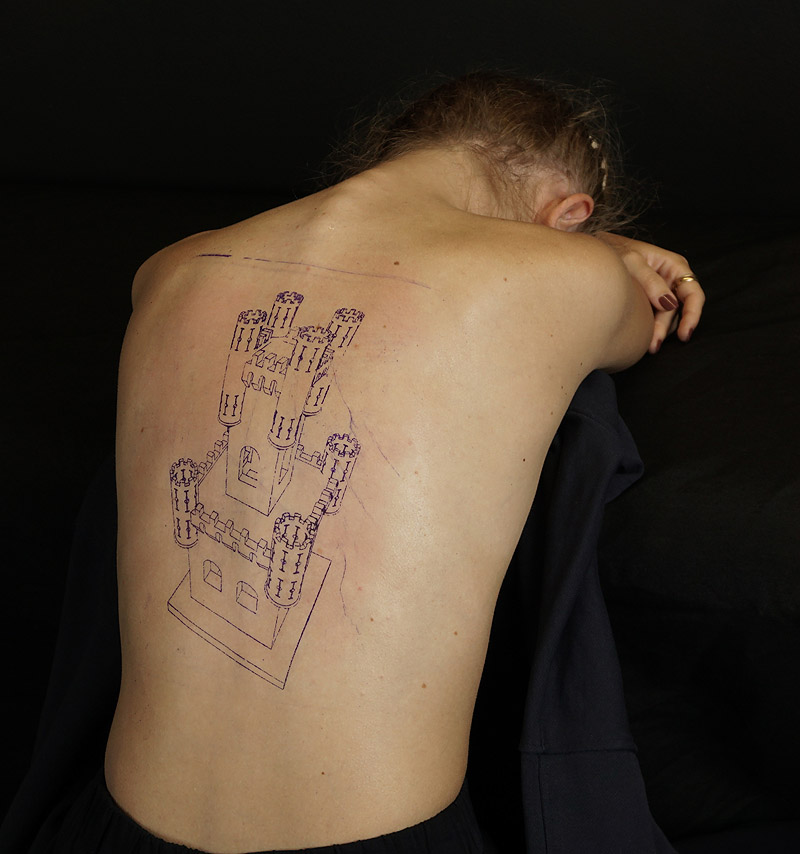 El tatuaje sobre la piel representa la marca indeleble que llevan estas mujeres, simbolizando el espacio doméstico al que históricamente han sido relegadas. La exposición busca reflexionar sobre los roles sociales que aún desempeñamos hoy en día. Estíbaliz Sádaba explora la diferencia de sexos como principio organizador de las ciudades y busca los lugares de memoria femeninos.