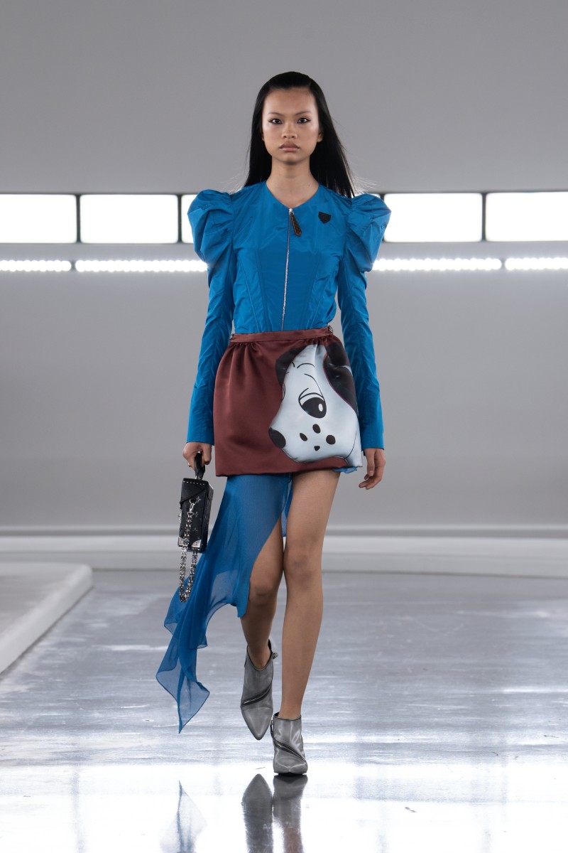 La colección Louis Vuitton Prefall 2024 abrió con su punto más gráfico y dadaísta. Distintos pilares del armario chic parisino de su lenguaje fueron intervenidos con nuevos gráficos. Estos los firma Sun Yitian, una artista famosa por sus obras centradas en elementos hinchables. Ahora, su bestiario más naif se plasma sobre abrigos, faldas y blusas. De igual manera, estos animales sirven para decorar bolsos clásicos del léxico de la maison e informar nuevas formas.