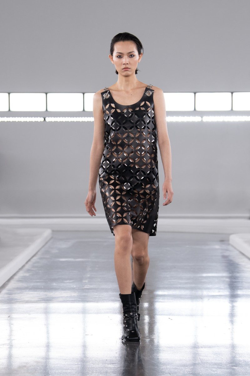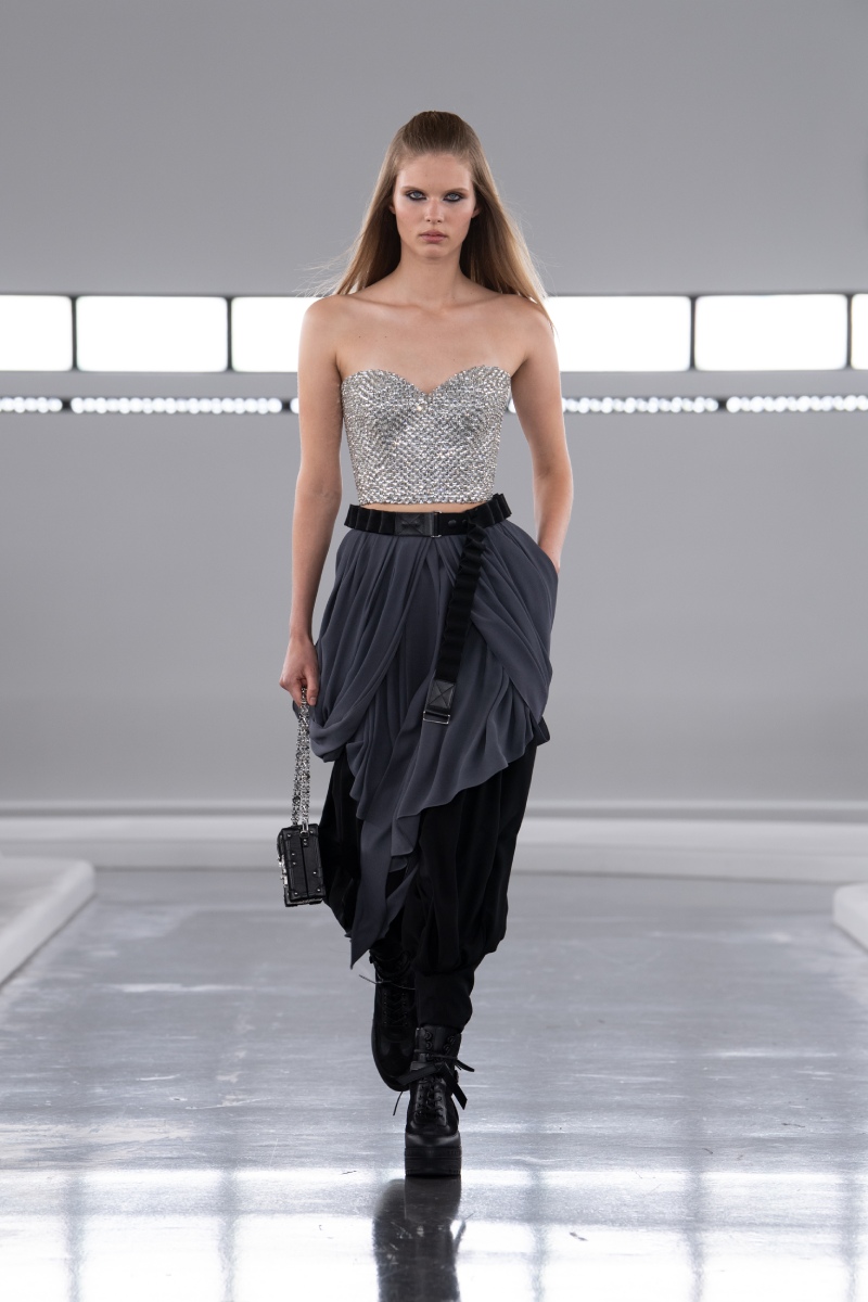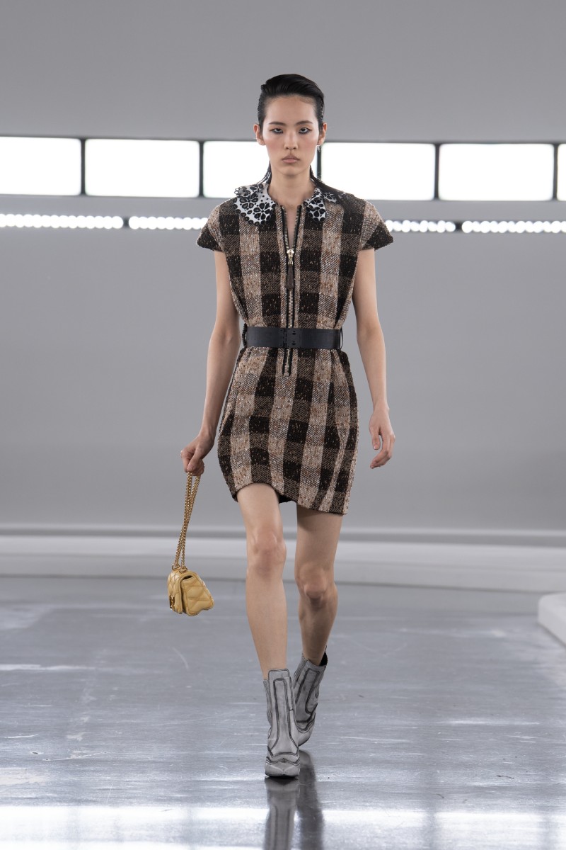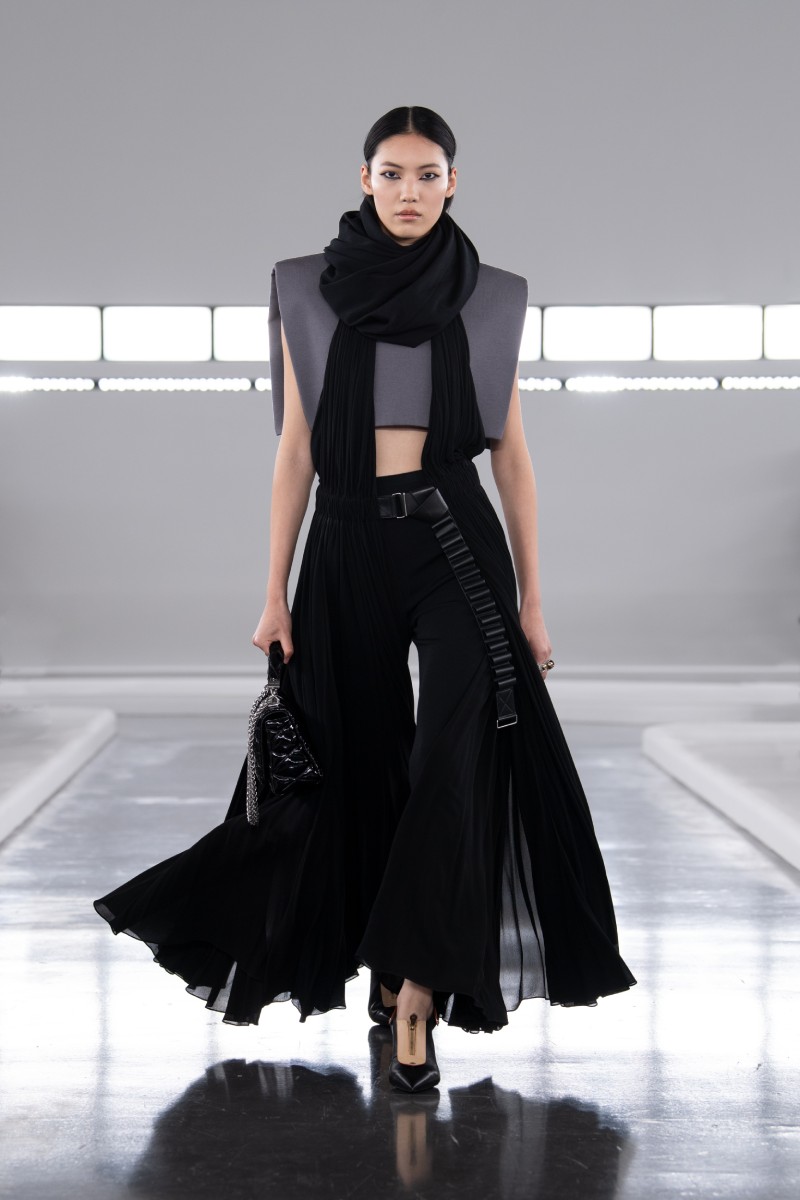 Esta primera entrega Voyager tuvo lugar en el Long Museum West Bund en Shanghái, uno de los puntos clave dentro del barrio más artístico y vibrante de la ciudad. Estas instalaciones de talante brutalista y Bauhaus fueron el escenario de un capítulo más de la retrospectiva del diseñador ante 10 años ostentando el puesto de mando dentro de las colecciones femeninas de la Maison. Y, como en toda mirada al pasado, elementos y piezas fundamentales de su archivo salieron a relucir con nuevos aires y actualizaciones, bebiendo fuerte inspiración del escenario donde se presentaban.