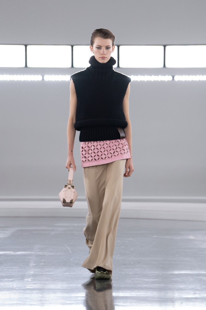 Para Louis Vuitton Prefall 2024 se recurre a las siluetas habituales de la maison, pero actualizadas con un twist. Modelos icónicos, que referencian al pasado maletero de Vuitton, se encargan de abrir un nuevo capítulo con reinterpretaciones más atrevidas de estos códigos. Y bueno, si queréis vuestro punto animal, también están los bolsos de Sun Yitian.