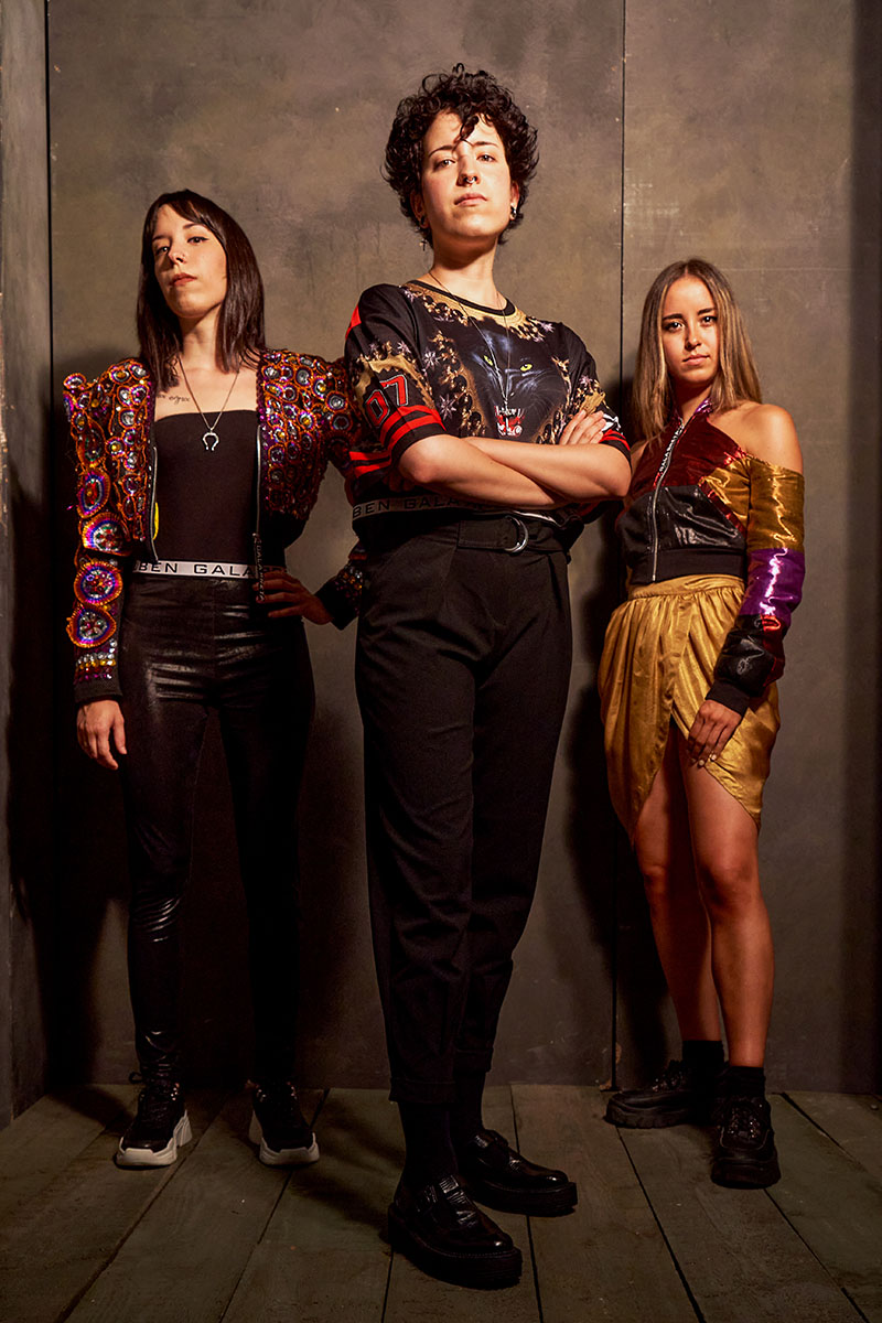 Estrogenuinas: Carolina lleva total look de Rubén Galarreta + Zapatillas de Victoria + Joyería de Thomas Sabo. Ángela lleva camiseta de Rubén Galarreta + Pantalón y zapatos de Bershka. Paula lleva total look de Rubén galarreta