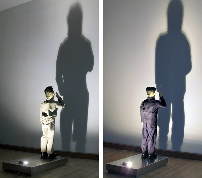 …Merino se dedica a mostrar las cosas que quedan sin hablar, los agujeros negros a los que no se quiere mirar. Actúa contra el silencio de los cerebros, de la palabra institucional, de la nota oficial. Lucha contra la amnesia visual y la narcotización de la mirada con la provocación. Como esos las dos pequeñas e inquietantes figuras de Kim Jong-il y Kim Jong-un, saludando a la nada, en un claro tono tragicómico: la familia de maníacos, extravagantes y crueles. The Munsters de Corea del Norte, que destapan la atracción del artista por Juan Muñoz o el Dictador de Charles Chaplin…