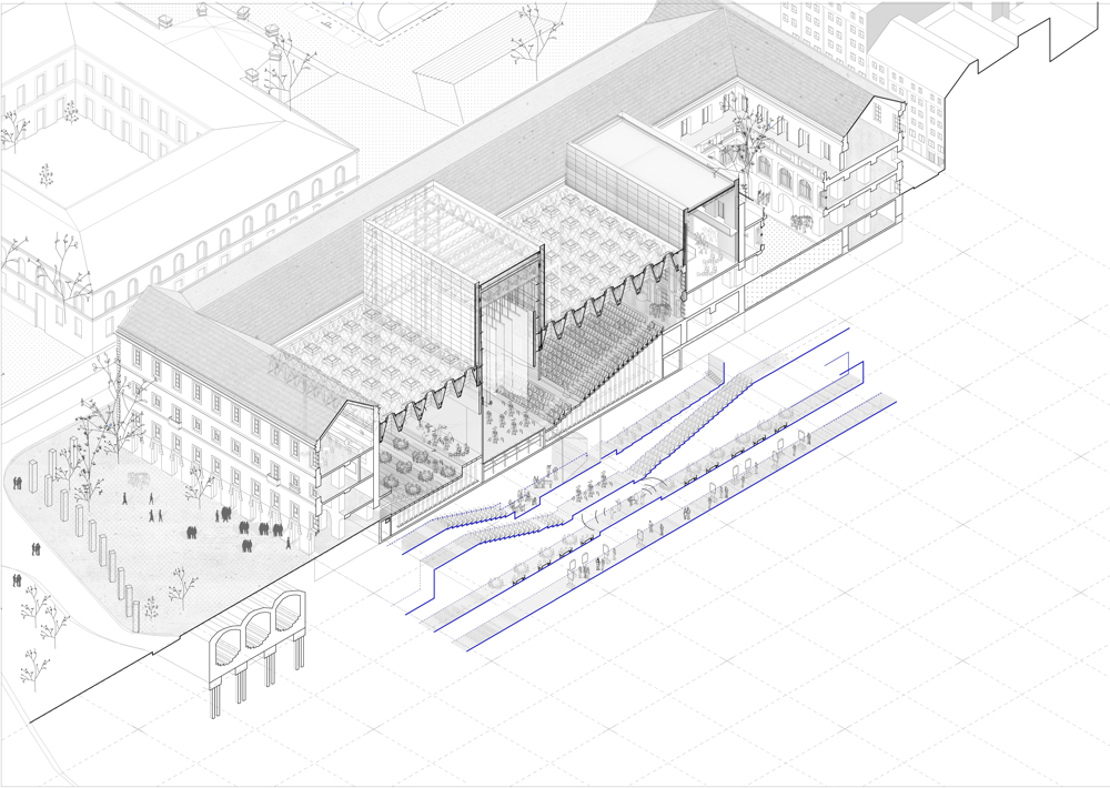 Desde Bélgica, Ruining the Ruinous Ruin reivindica la ruina como herramienta para transformar el espacio urbano. Propone un paisaje que evoluciona al ritmo de las demoliciones controladas, con un sistema de captación y redistribución de agua que reactiva lo público.