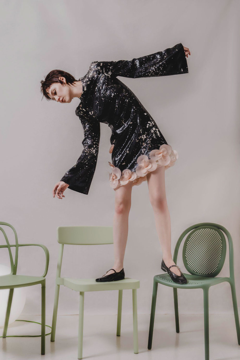 Vestido DEVOTA & LOMBA (@devotaylomba) y Zapatos MUNNÉ 1941 (@munne1941) Sillas y Lámpara de Izquierda a Derecha, todo en CUBIÑÁ (@cubinya_barcelona): Silla INTRIGO 3715 de CLAUDIO DONDOLI & MARCO POCCI para PEDRALI (@pedralispa) Lámpara HAPPY APPLE de ALBERTO BASAGLIA & NATALIA ROTA NODARI para PEDRALI Silla GRACE de SAMUEL WILKINSON para EMU (@emugroupspa) Silla REMIND de EUGENI QUITLLET para PEDRALI