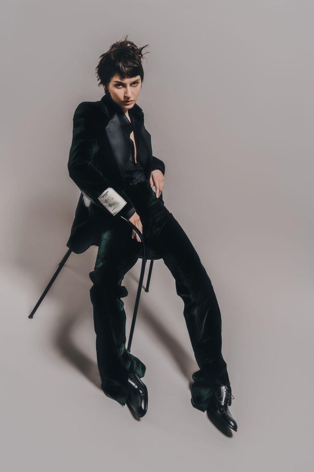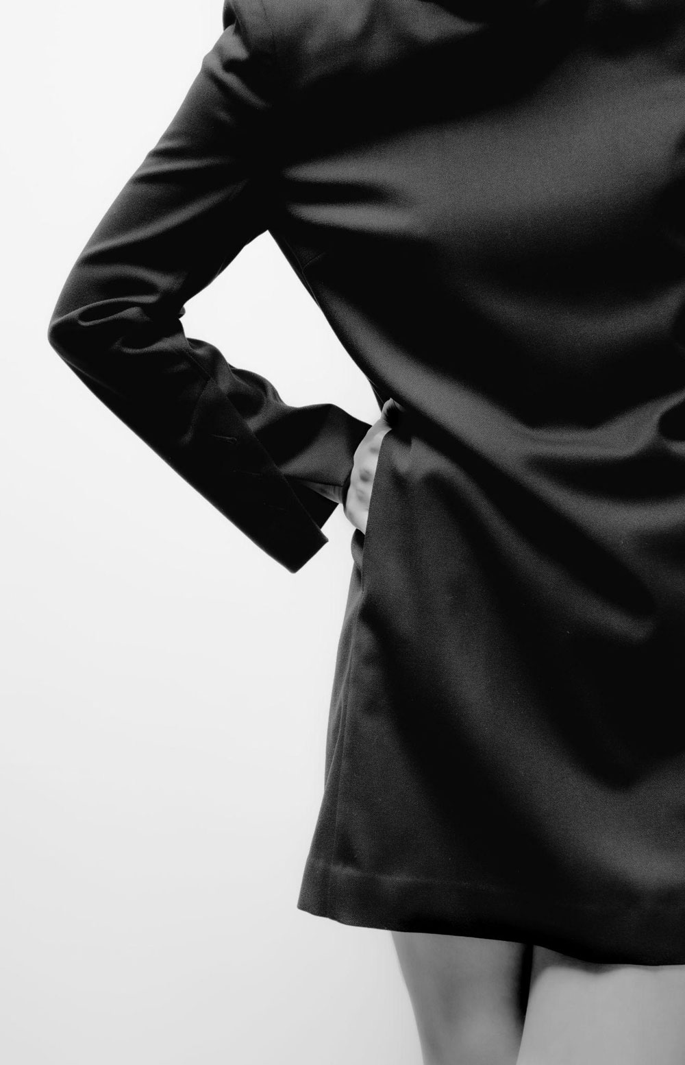 Existencialismo feminista y moda: Traje y Camisa OTRURA (@casaotrura), Zapatos KEEP HONEST for MUNNÉ 1941 (@munne1941) Silla PAVILION AV6 de ANDERSSEN & VOLL para &TRADITION (@andtradition) enCUBIÑÁ (@cubinya_barcelona)
