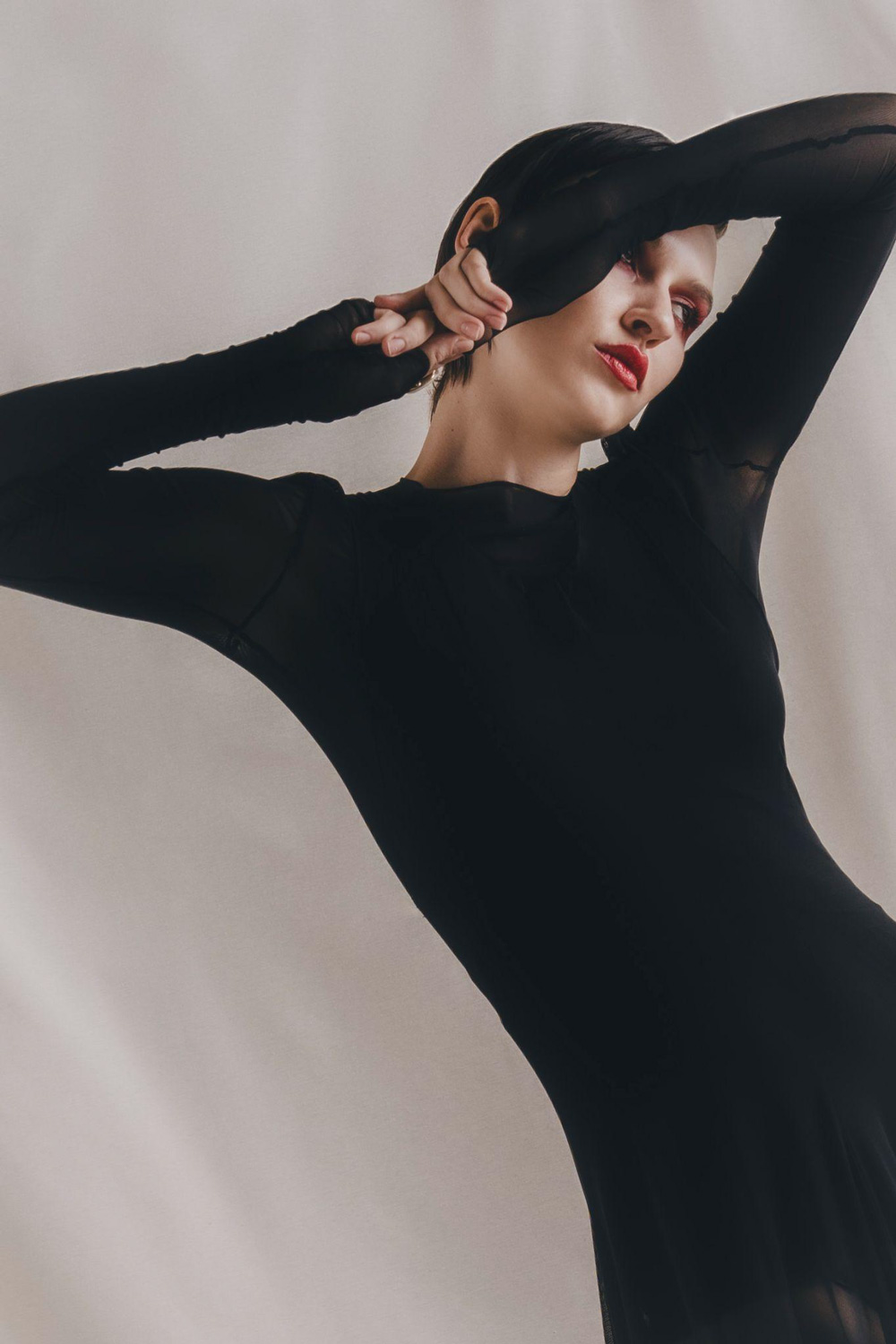 Existencialismo feminista de moda: Vestido ANOTHER ARCHIVE (@anotherarchive__) + Medias MAISON CLOSE (@maison_close) + Liguero MAISON CLOSE, Zapatos EVADE HOUSE (@evadehouse) y Anillo ANDRÉS GALLARDO (@andresgallardofficial)