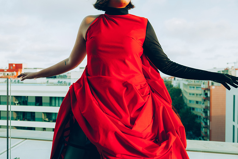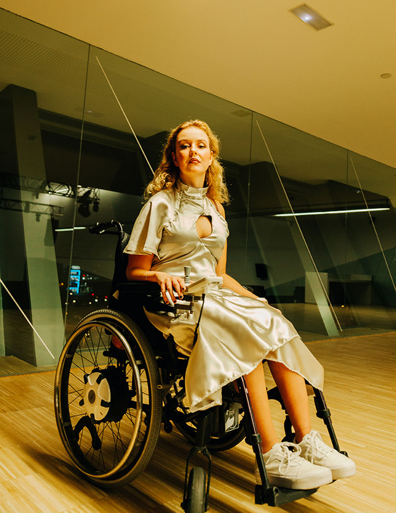 Propuesta de vestido de fiesta para persona con movilidad reducida.