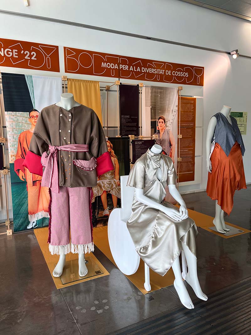 El Sustainable Challenge 22 abre sus puertas en el vestíbulo del Disseny Hub Barcelona para exponer los seis proyectos de diseño de moda sostenible resultantes de un maratón de diseño en el que participaron estudiantes españoles y británicos con el fin de crear propuestas de looks inclusivas para modelos con cuerpos diversos.