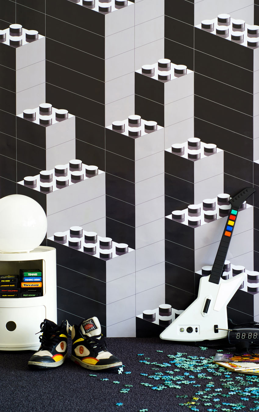 Arriba: Constructor, papel pintado diseño de Pauline Gorelov