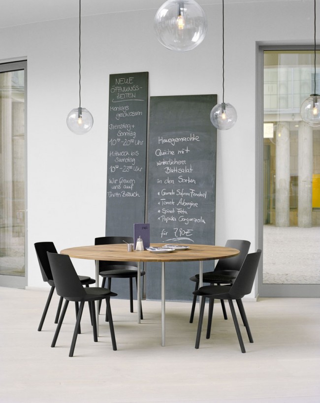 Arriba: Mesa TA16 Anna. Diseño Philipp Mainzer. Sillas CH04 Houdini. Diseño de Stefan Diez. Produce e15