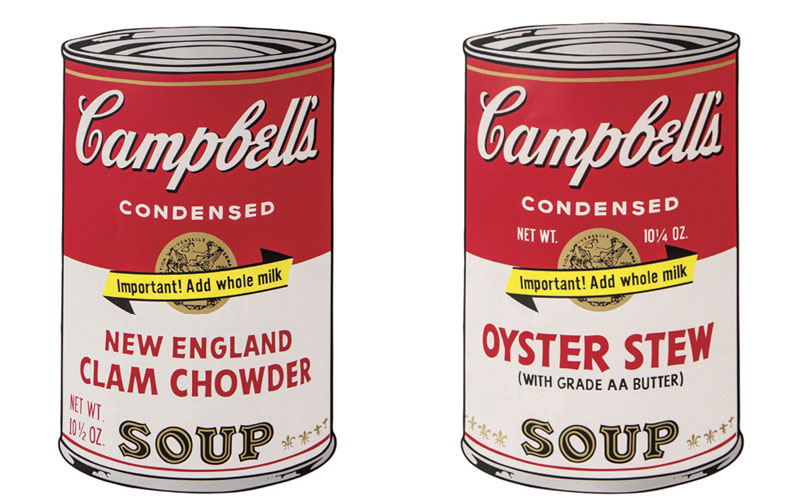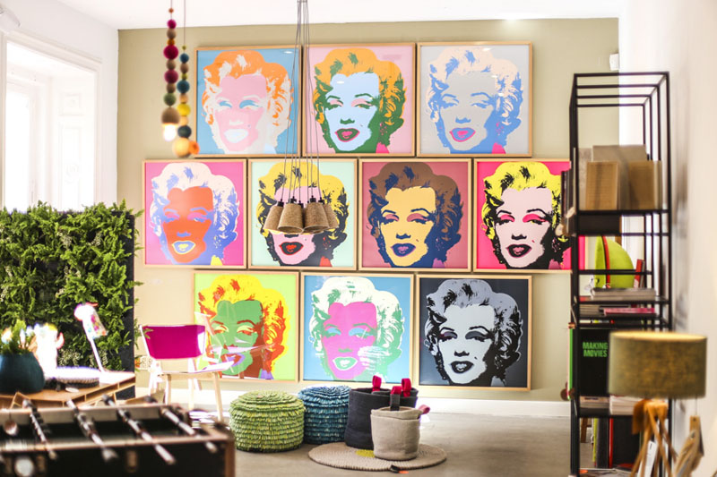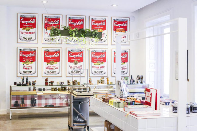 Sus piezas más conocidas, son precisamente las piezas que podréis contemplar en el concept store malasañero El Paracaidista. Una edición de la serie completa de Marilyn – Warhol dispuso el rostro de Marilyn, tomado de una fotografía publicitaria de la película “Niágara” de 1953 realizada por Gene Korman – y de las latas de sopa Campbell – que pertenece a la reimpresión realizada en 1985 por Sunday B. Morning, en Bélgica – que Warhol realizó a partir de 1962. Obra gráfica original, que se editó en sucesivas impresiones a partir de 1970, gracias a la colaboración con la editora especializada belga Sunday B. Morning, y con la que el artista remataba una idea largamente acariciada: llevar el arte a la cultura de masas. Ubicarlo en todas partes. Hacer que muchos se hicieran con él.