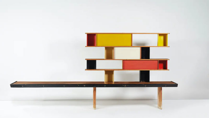 Imágenes superiores: 1) Charlotte Perriand en la Tumbona basculante, un diseño de Le Corbusier, Jeanneret y Perriand de 1928. 2)Estantería ‘Tunisia’, creada en 1952 y realizada en los talleres Jean Prouvé. Foto: Phillips