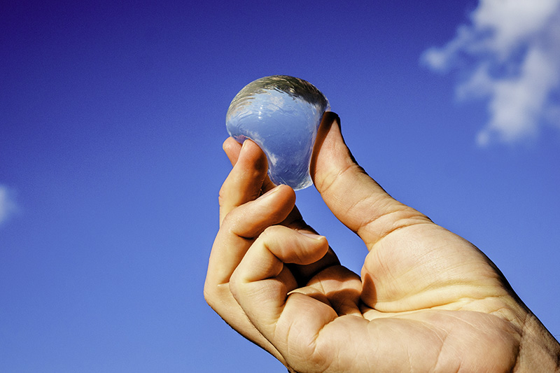 Una burbuja que almacena agua potable dentro de una membrana comestible a partir de un extracto natural de algas. Biodegradable y con un coste de producción inferior al de una botella de agua.