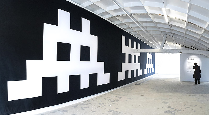 El desafío logístico fue considerable: “Es una exposición enorme y fue un verdadero reto ponerla en marcha porque tuve muy poco tiempo para hacerlo. Además, tuve que trabajar en un espacio completamente vacío y en bruto”, relata Invader. Las fotos que subió el artista a sus redes dan fe de un espacio desolado apenas un par de meses antes de la inauguración y de su transformación paulatina en su área de