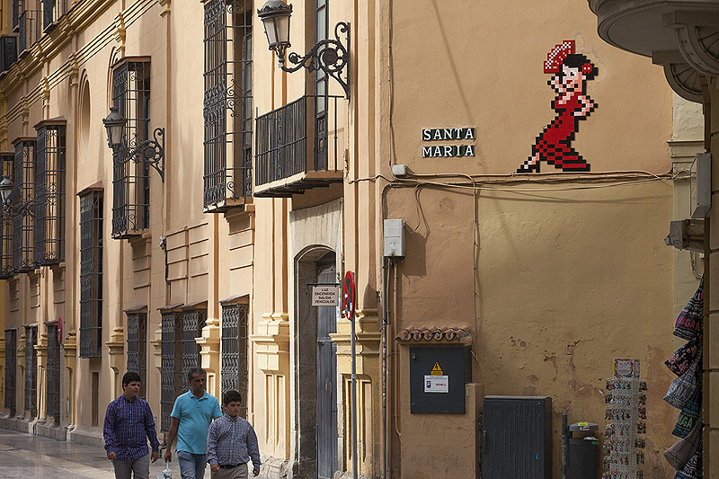 Hablando de contratiempos, resulta imposible no entrar a comentar su experiencia en Málaga. Hace algunos años fue multado por instalar flamencas pixeladas -para escándalo del obispado- y alienígenas bebiendo San Miguel. “Lo que sucedió en Málaga fue una verdadera lástima, para mí, para mi público y también para la ciudad” reflexiona Invader. “Tengo la sensación de que se trataba de una disputa local en medio de la cual me encontré”. Para él, lo peor es que “a raíz de este asunto casi todo mi trabajo en la ciudad fue destruido o saqueado”, algo que le duele especialmente. El desarrollo del caso, que se puede seguir a golpe de hemeroteca, terminó recientemente con su absolución.