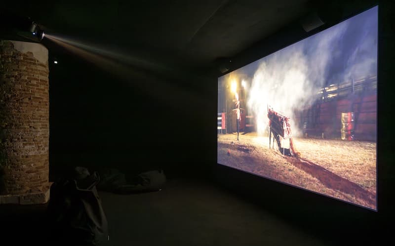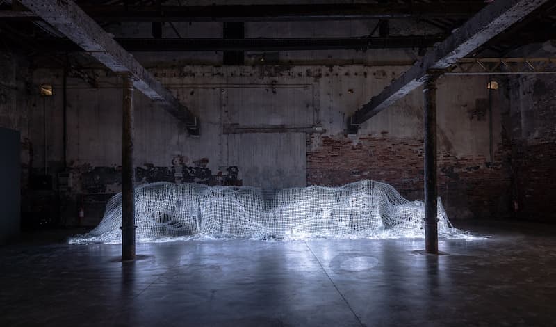 Una de las pocas piezas high tech y que trata de nuestra vida indiscutiblemente ligada a Internet es la de WangShui. La artista utiliza IA para descubrir sus patrones implícitos. En Arsenale presenta una video escultura multicanal que utiliza pantallas de malla LED entrelazadas, creando una transmutación de imagen y luz. En ella explora la migración de materia y forma entre América Latina, Asia y Europa.