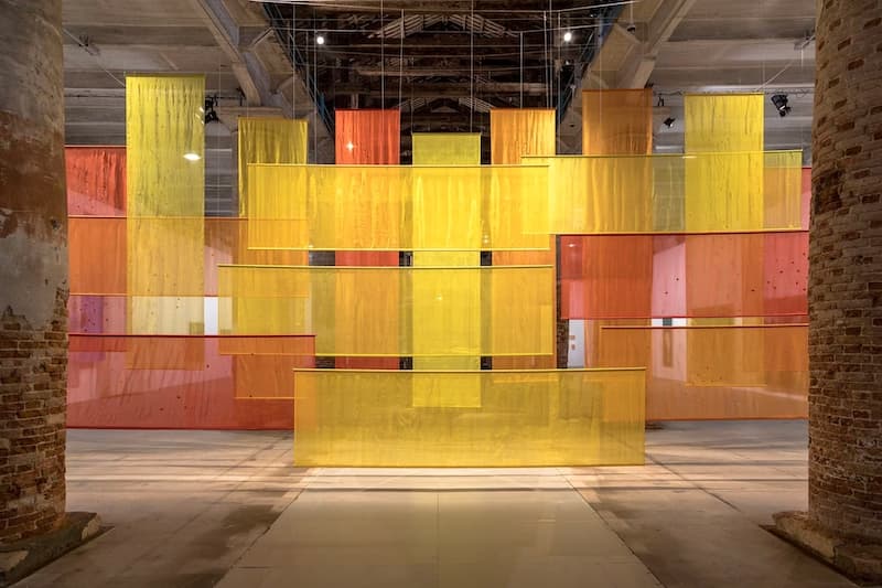 La celosía colocada en el techo al comienzo de la muestra en Arsenale, obra del colectivo maorí Matahoo (Bridget Reweti, Erena Baker, Sarah Hudson y Terri Te Tau) ha recibido el León de oro a la mejor obra de la expo central. El colectivo compuesto por cuatro mujeres maoríes de Aotearoa (Nueva Zelanda en maorí), han tejido y fabricado esta maravillosa estructura resplandeciente con correas de carga industriales tensadas emulando esteras maoríes.