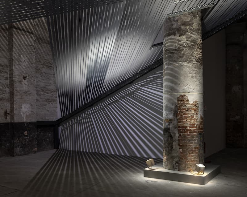 Cierra el recorrido por el Arsenale las columnas monumentales de Lauren Halsey. Inspirada en el South Central de Los Ángeles, los capiteles de las columnas tienen tallados retratos y historias de la gente del barrio. En un ejercicio que relaciona arquitectura y comunidad, honra y defiende la historia de la diáspora negra y afroamericana.