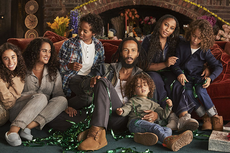 El hijo mayor de la leyenda del reggae Bob Marley, Ziggi, junto a su mujer Orly Agai y sus hijos Zuri, Judá, Gedeón, Abraham e Isaías son los protagonistas clave de la nueva campaña de Navidad de UGG. En este momento, el hijo de Bob se encuentra en activo como músico y líder de la banda “Ziggy Marley & The Melody Makers”. Los valores de conciencia social que le han dejado su legado familiar siguen vivos en él a través de su música.