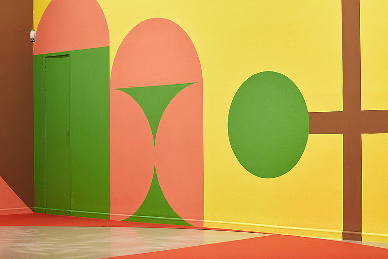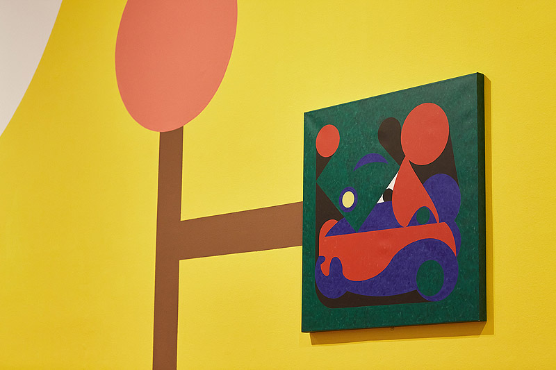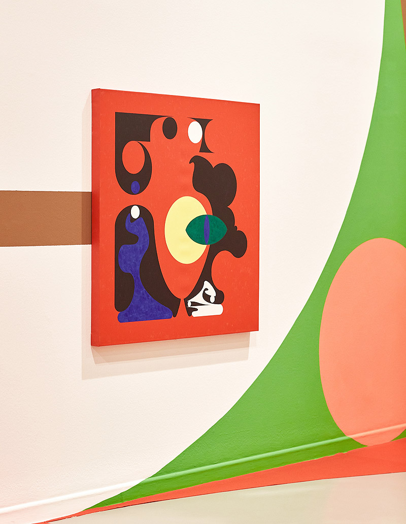 Este espacio salvaje por el que Caperucita temía caminar sola se convierte en un paisaje multicolor inspirado en el arte geométrico y en el diseño doméstico de los años 70 y 80. Minoliti, que se formó en el campo de la pintura, entiende esta técnica como un campo expandido que es capaz de crear atmósferas inmersivas como la de este bosque de fábula en el que conviven grandes murales con pequeñas obras sobre lienzo. Le artiste propone alternativas rebeldes en las que lo blando, lo tierno, lo infantil y lo suave son protagonistas.