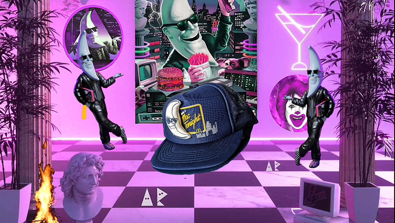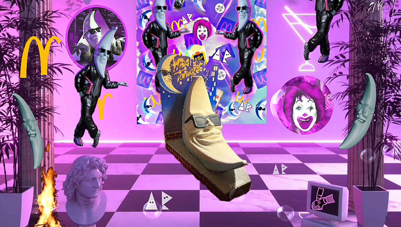 Esta pieza de video arte, concebida como un visual de Vaporwave, utiliza la técnica del copy/paste de manera única en su apropiación del New Pop. Reinventa toda la parafernalia de McDonald’s para darle su merecido lugar en el siglo XXI.