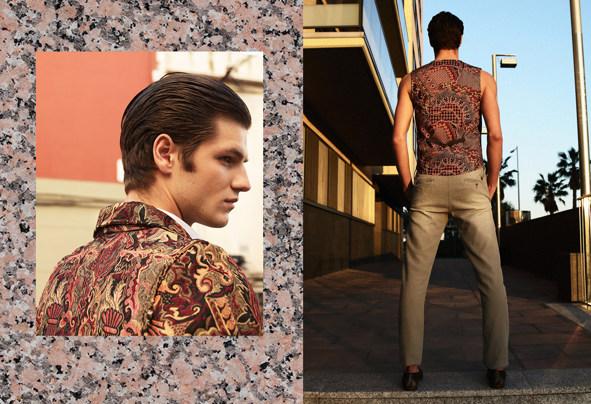 Above: Trousers Antony Morato + Shoes Gigi D’Amico Shoes + Shirt Aragaza + Jacket Vintage Tapestry