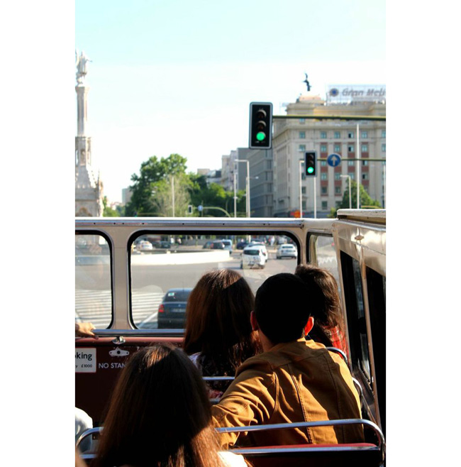 DISFRUTANDO DEL SOL MADRILEÑO EN EL SEGUNDO PISO DE UN BUS VINTAGE DE ESTILO LONDINENSE, CON UN DIVERTIDO GUÍA DE LA JOVEN COMPAÑÍA, CRUZAMOS LA CIUDAD PARA LLEGAR A SAN AGUSTÍN DE GUADALIX. ALLÍ SE ENCUENTRA LA FLAGSHIP STORE DE EDUARDO RIVERA.