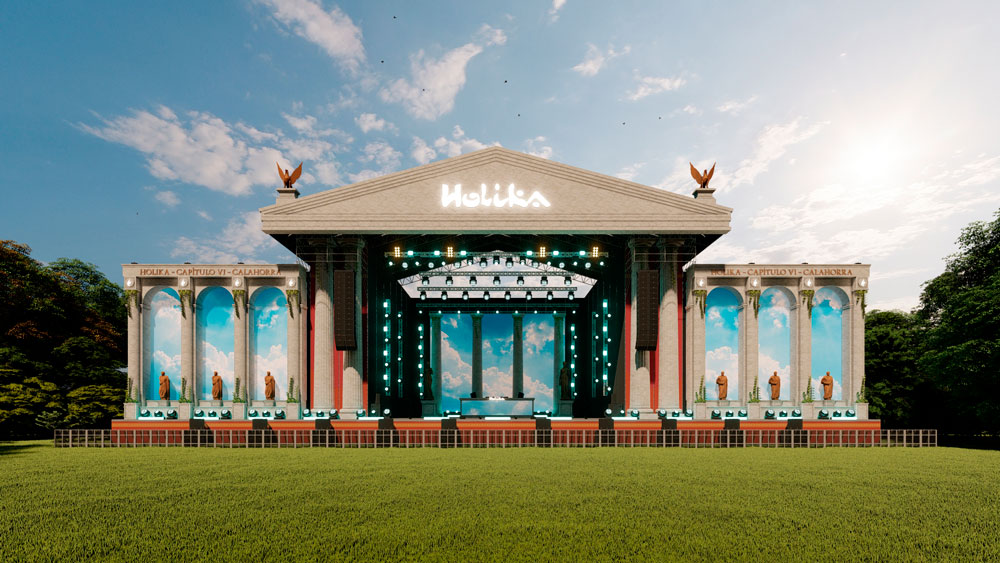 El escenario principal, uno de los más grandes realizados hasta la fecha en España, tendrá unas dimensiones de 55 metros de ancho por 25 metros de alto, proponiendo una experiencia inmersiva alucinante que te transportará a otra era. Su tecnología integrará pantallas gigantes y efectos especiales, al tiempo que se mezclará con las imponentes columnas y estatuas de la antigua Roma, creadas por maestros falleros valencianos. Por su parte, el escenario secundario seguirá la misma línea estética con unas dimensiones de 25 por 20 metros. Una obra de ingeniería y arte para que el público pueda viajar a otros mundos a través de la música en directo.
