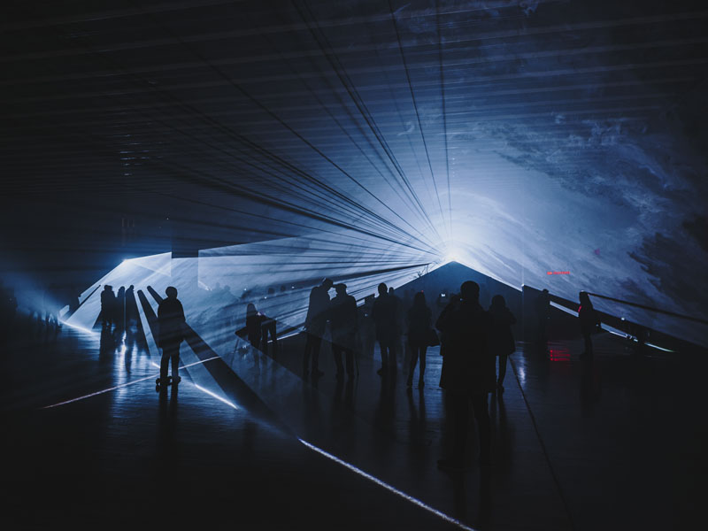 “Fiat Lux 3 es arquitectura creada a partir de la luz. Luz como material constructivo. Espacios inexistentes aparecen de la nada, mutan se mezcla de sensibilidades visuales sonoras, espirituales y nos acercamos, poco a poco a lo intangible. La instalación invita a realizar un recorrido libre por el espacio tanto para contemplar las escenas como para interactuar activamente con los elementos físicos y volúmenes que aparecen y desaparecen” explican desde la organización del festival
