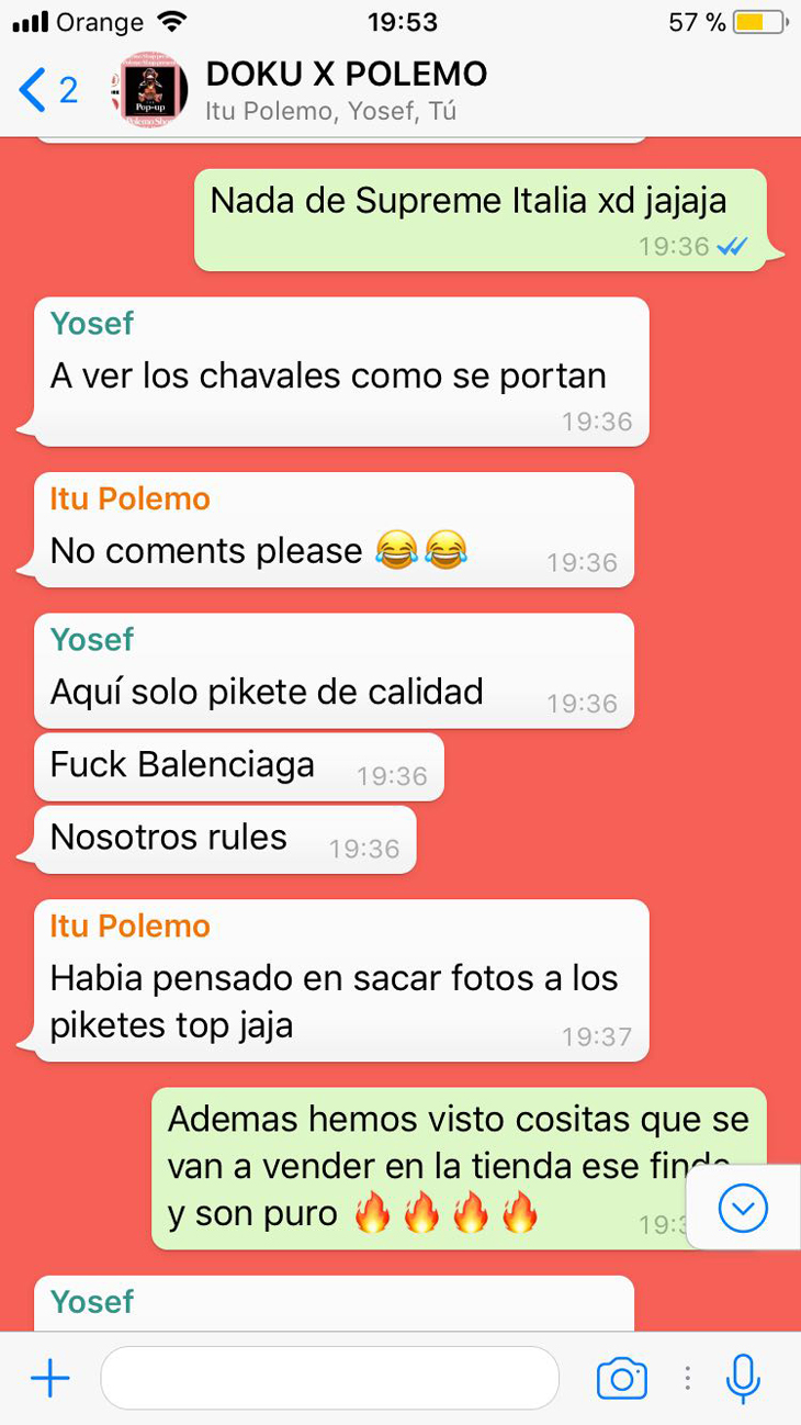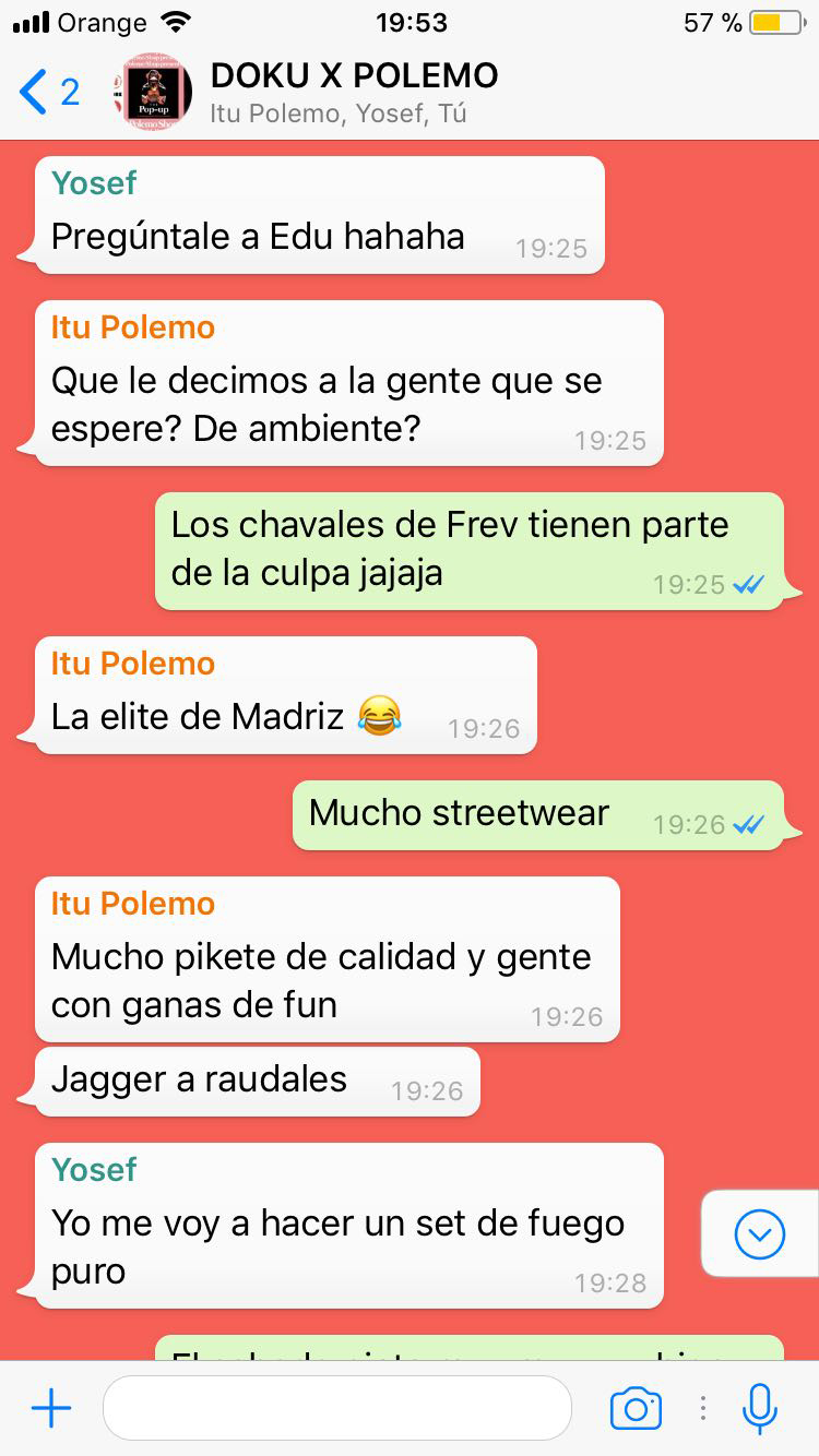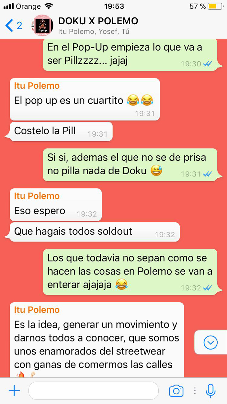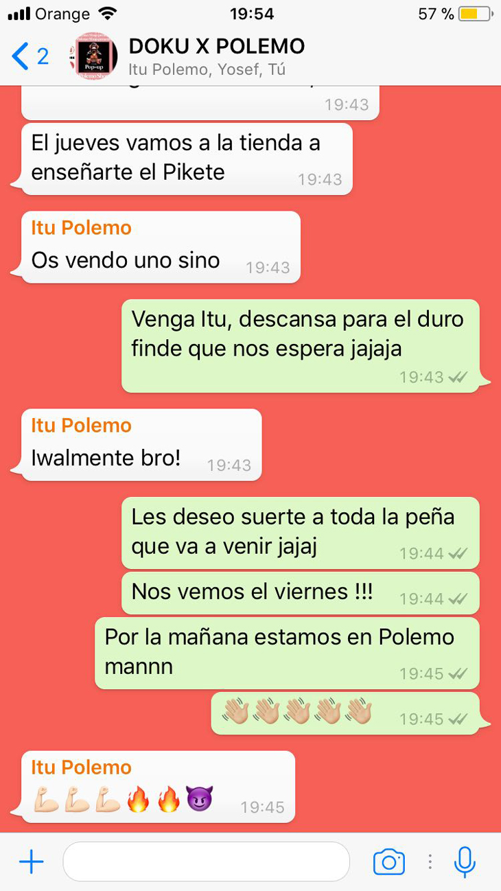 [18/3/18 19:34:00] Itu Polemo: Es la idea, generar un movimiento y darnos todos a conocer, que somos unos enamorados del streetwear con ganas de comermos las calles 🔥💪🏻
