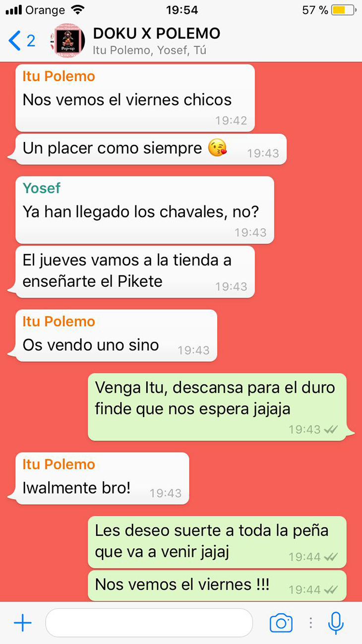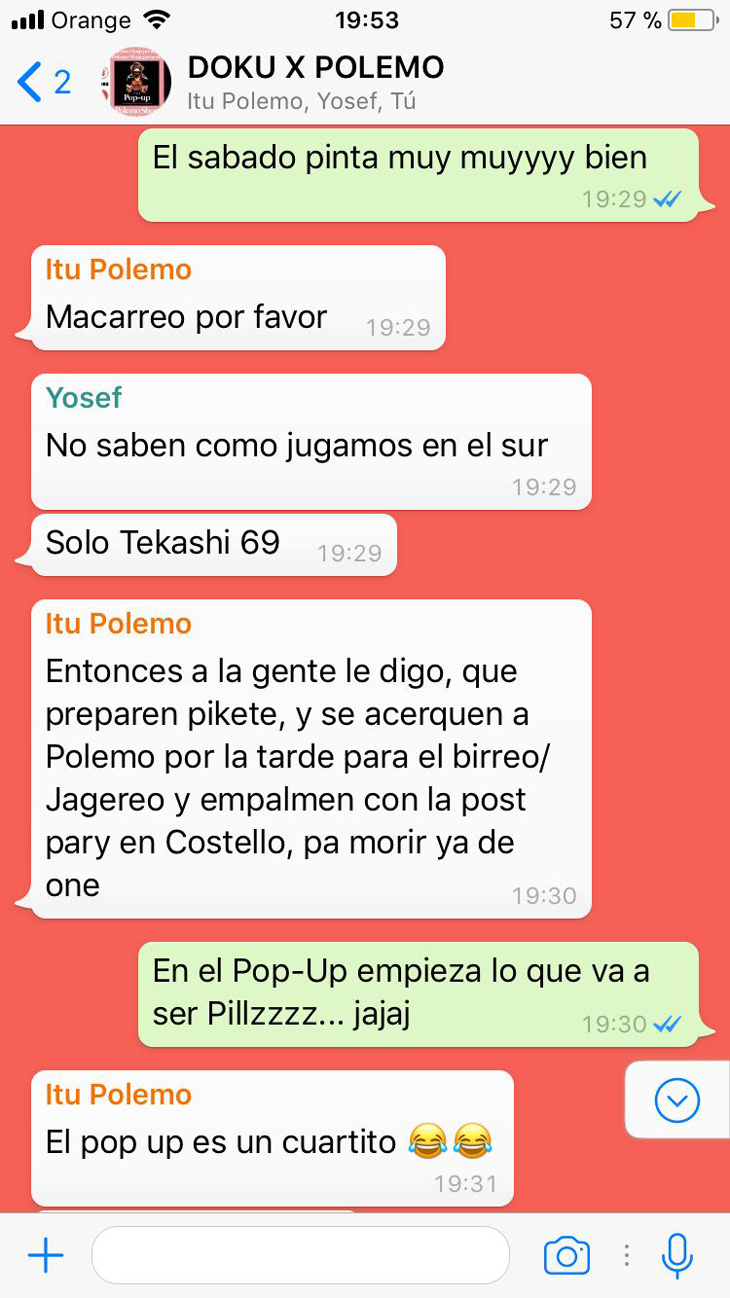 Todo está en marcha. La prueba la tenéis en este chat de Whatsapp con las conversaciones de algunos de los protas de la movida: Itu Polemo, Yosef, Armando Noya… Muy cracks todos ellos.