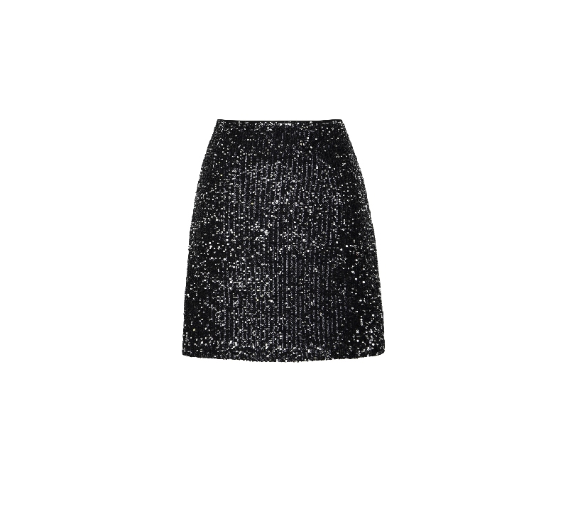 Falda corta con estampado y lentejuelas de Lili Sidonio.
