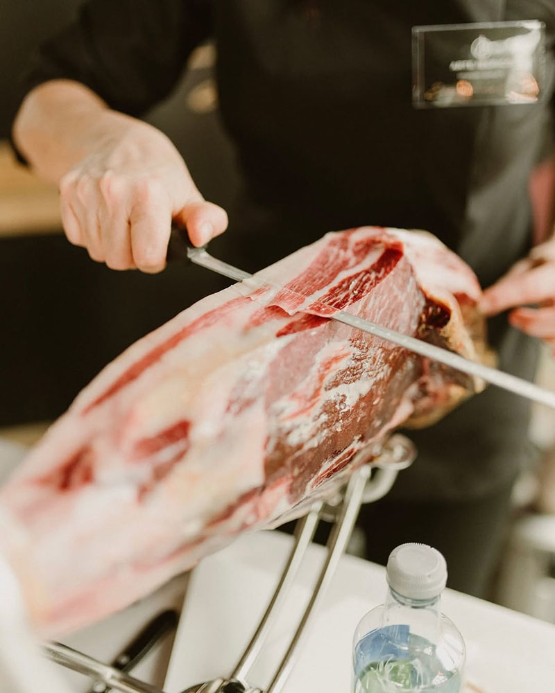 Buenas preguntas. El arte de cortar jamón pesa porque se requiere muy buena técnica. Sin embargo, la calidad de la pieza resulta primordial, ya que la materia prima y su origen son la base del equilibrio. Un cortador nunca puede estar por encima del jamón. Más fundamental aún es transmitir la cultura del ibérico, no solo se trata de cortar. Claro está, un buen cortador siempre hará mejorar al jamón de inferior calidad.