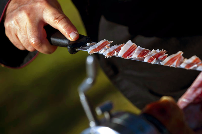 El enemigo más grande a la hora de degustar un jamón son el frío y la humedad. Lo ideal es cortarlo a una temperatura ambiente no inferior a 23 grados. Y cuando se corta, hay que mantener la mano contraria detrás del cuchillo para evitar accidentes.