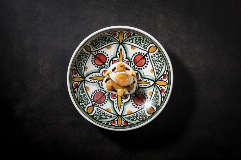 Buscamos el testimonio de un chef profesional, de uno como Mario Céspedes, responsable del restaurante de fusión japo-peruana-astur Ronda 14 (Avilés y Madrid). “Lo más importante de todo es que lo que quieras transmitir vaya todo unido”, aclara al otro lado del teléfono. “Si pienso que debe tener un contraste amargo, cítrico y picante al mismo tiempo, tengo que trabajar con tres productos a la vez. Y tiene que quedar bonito sin perder lo que quiero transmitir. Eso te lo marca el emplatado”. La salsa vuelve a aparecer en la conversación: “está la habilidad que tengas con la cuchara para marcar los trazos. Hay una parte del plato que es decorativa, que se puede hacer con la misma salsa integrada en el producto principal. Manchas el plato para darle un plus y que el cliente pueda aprovechar la salsa si necesita más”. Ahora bien, “si quieres poner una salsa y ves que queda horrible, aunque esté buena estamos fallando en el emplatado. Entonces le doy vueltas para saber dónde ponerla, si arriba, abajo, o hacer una esfera para que la salsa caiga encima del producto”.