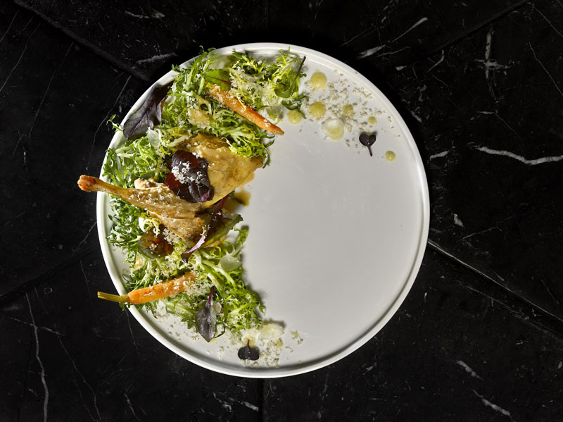 Imagen superior: Ensalada de perdíz escabechada. Restaurante: Sqd