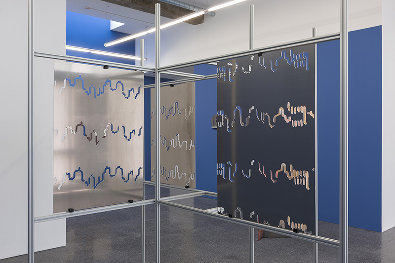 Lorenzo Sandoval. ‘Leftovers of a Choreography for Machines (Immanent Paintings) n.2’, ‘Shadow Writing (Lace Variations)’Lehman + Silva Gallery, 2018Aluminio, hierro y cobre, 170 x 100 x 70 cm