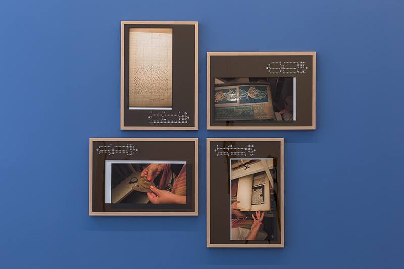 En realidad está bastante relacionada con el proyecto de ‘Shadow Writing’, pero quizá aparece alejada por ser un encargo de los curadores Bonaventure Soh Bejeng Ndikung, Marie Hélène Pereira y Kamlila Metwaly. De hecho, en Dakar hice dos proyectos. El primero era una arquitectura para visualizar el legado de Halim el-Dabh, un compositor y artista increíble que ha estado prácticamente ignorado por la historia del arte. Halim empezó en El Cairo a hacer música concreta antes de Pierre Schaeffer. Pero quizá esto no es tan importante como la cantidad de ideas que ha puesto en relación a la hora de pensar la música, su composición, su distribución y su enseñanza. Mi manera de abordarlo fue hacer un archivo blando que replicase la forma de las ondas con las que él trabajaba, y que se articulase con un sistema basado en su código cromático de composición, para el cual se inspiró en los antiguos egipcios.