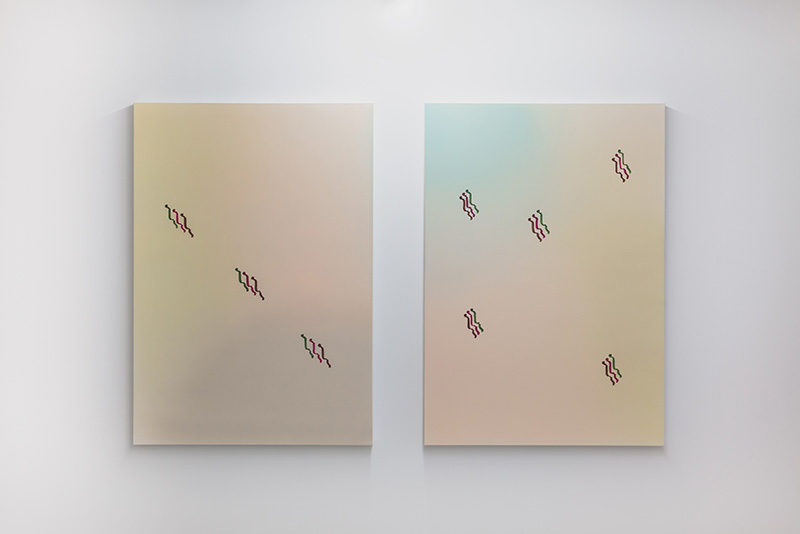 Lorenzo Sandoval. ‘Social Factory n. 2’ y ‘Social Factory n. 3’, Acrílico sobre lienzo. Shadow Writing (Lace /Variations). Lehmann + Silva, Porto, 2018