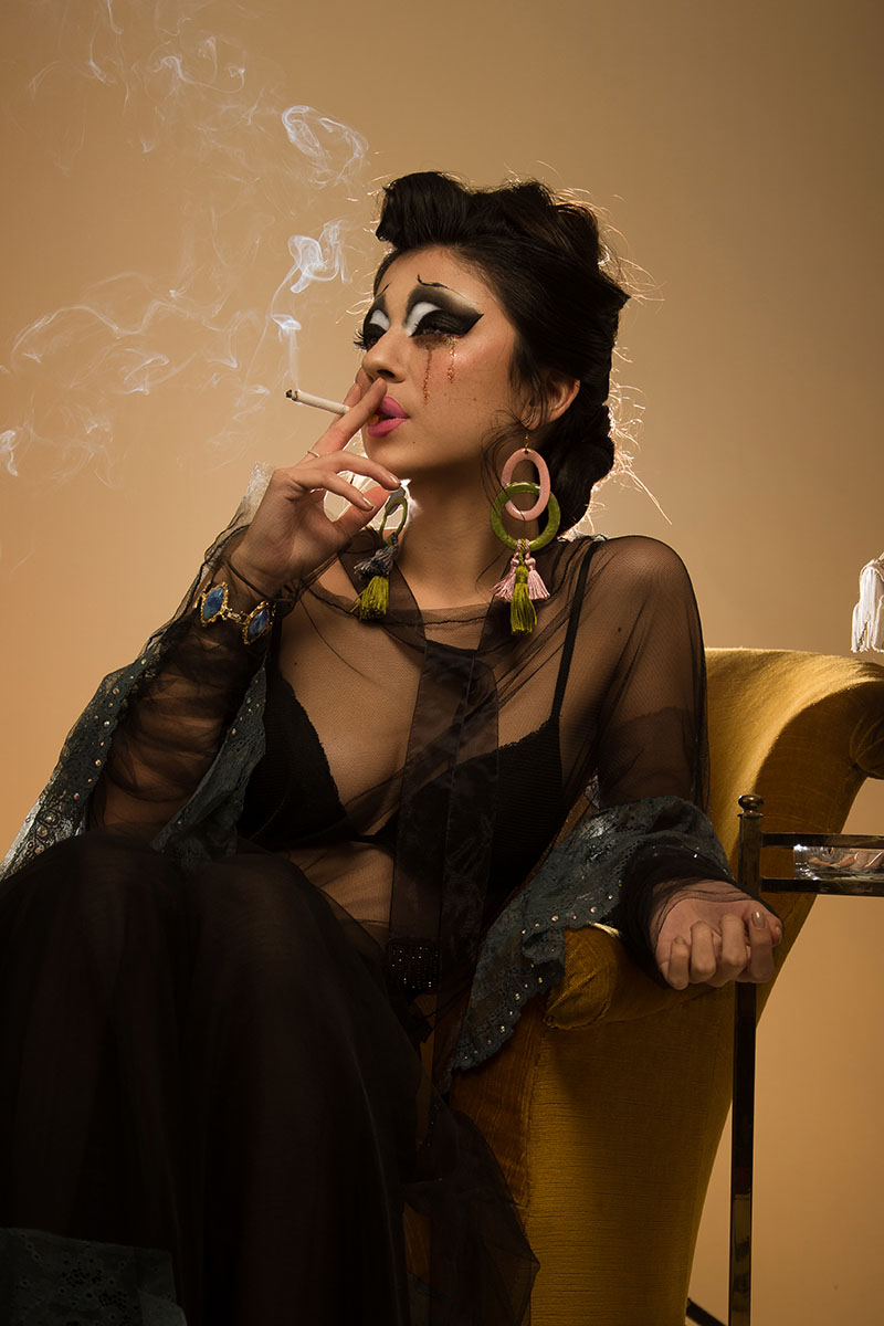 Foto Arriba: Saori lleva top y falda de Guillermo Décimo + pendientes Gombau.