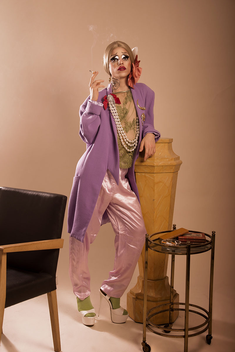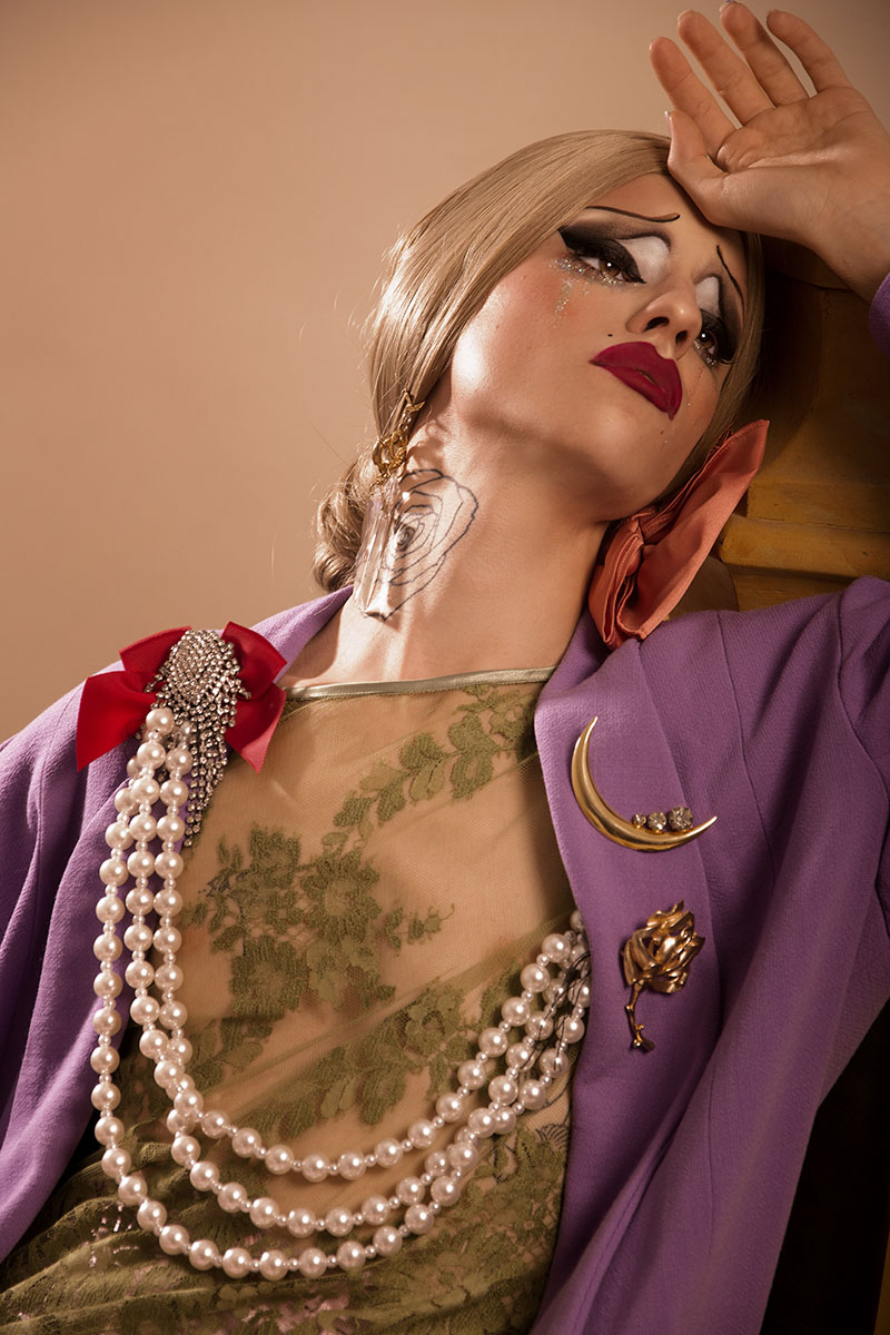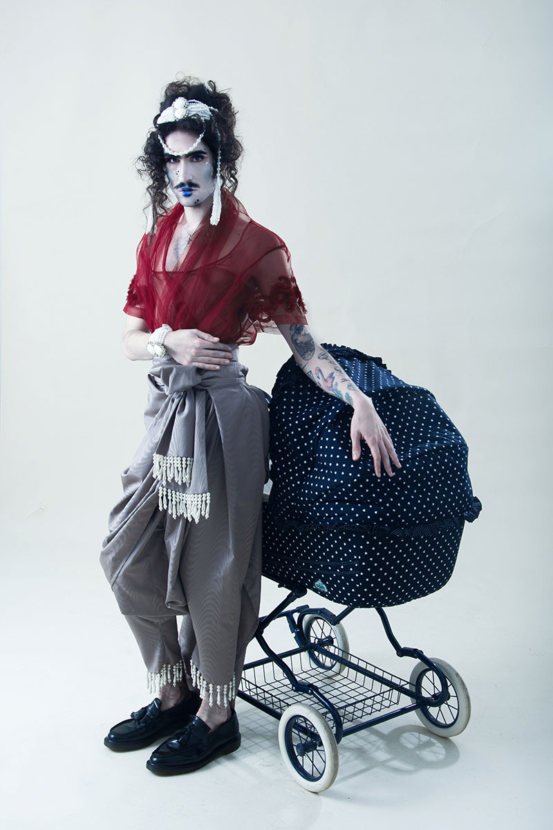 Foto Arriba: Enrico lleva top, chaqueta y accesorios de Guillermo Décimo + Pantalones de Gombau + Zapatos vintage.