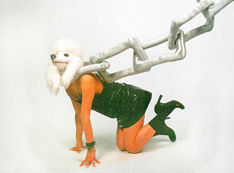 Foto Arriba: “El perro” lleva vestido de Airinx + Zapatos de Balenciaga + Puffed Chain de Abryl Casanova.