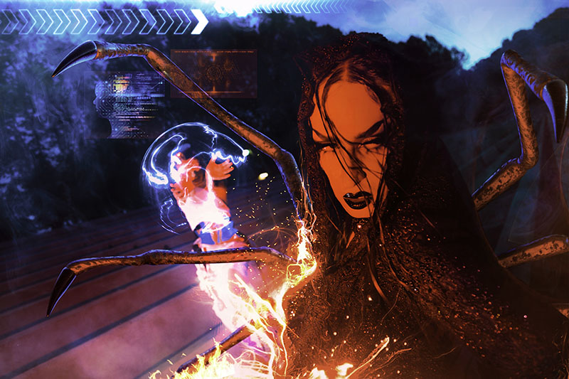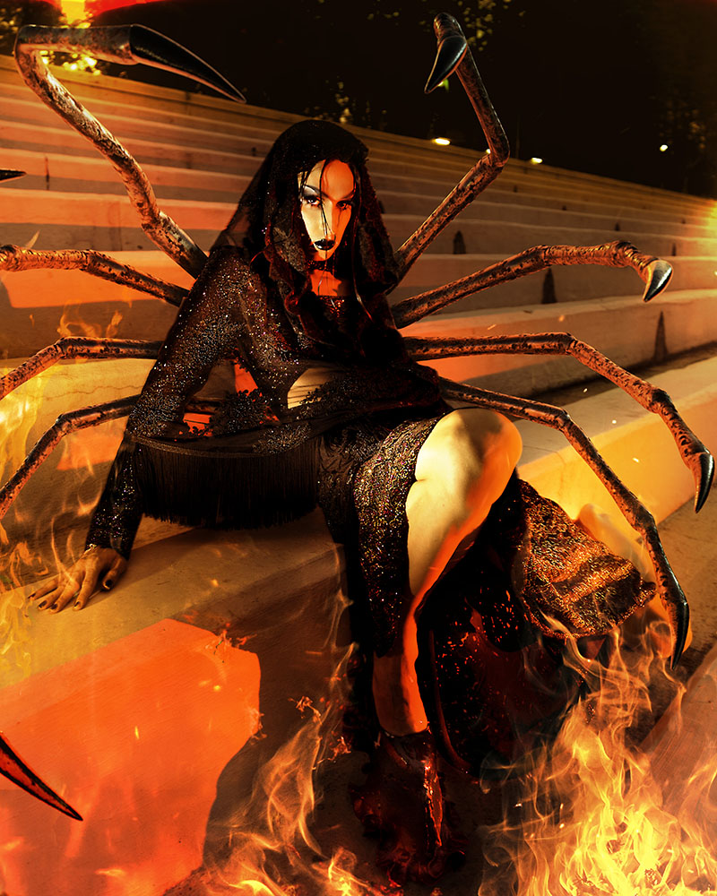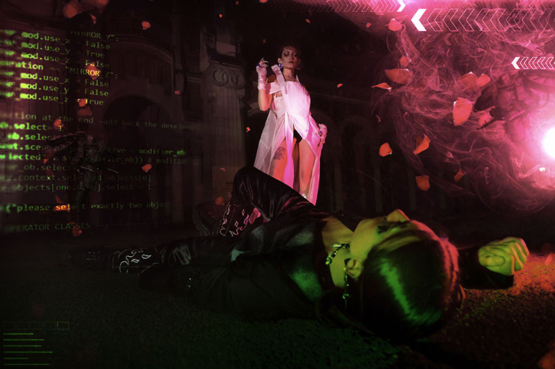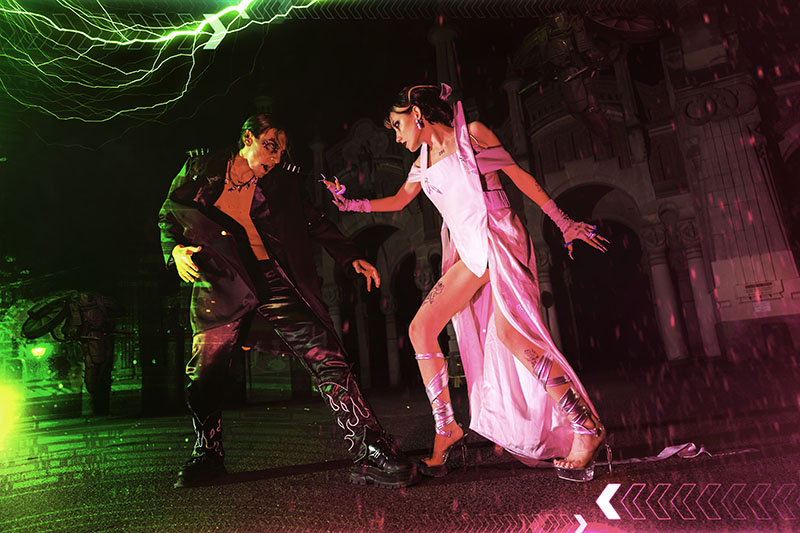 ¿Qué nos puedes contar del editorial que presentáis hoy? El editorial nace de la competición entre personajes, que a su vez, extrapolado a los estilismos, supone también una competencia directa entre los distintos diseñadores emergentes en su intento por labrarse un hueco en el mundo de la moda. Un mundo, tan condicionado por el “fast fashion” que prefiere invertir en prendas con una edad caduca temprana, más que en la sostenibilidad o la diferenciación que representa el trabajo de los diseñadores. Sin embargo, el editorial nace de una generación que, con cuatro monedas, se pasaba las tarde en las máquinas recreativas compitiendo entre sí con su personaje preferido. #Chooseyourfighter supone la diferenciación de escoger entre un luchador u otro, en base a los gustos propios personales. De ahí que los referentes de los sean totalmente varipiopintos, desde el Pokémon Mewtwo, la araña Elise del League of Legends, Eduardo Manostijeras, el Barbero diabólico de la calle Fleet o Kill Bill entre otros.