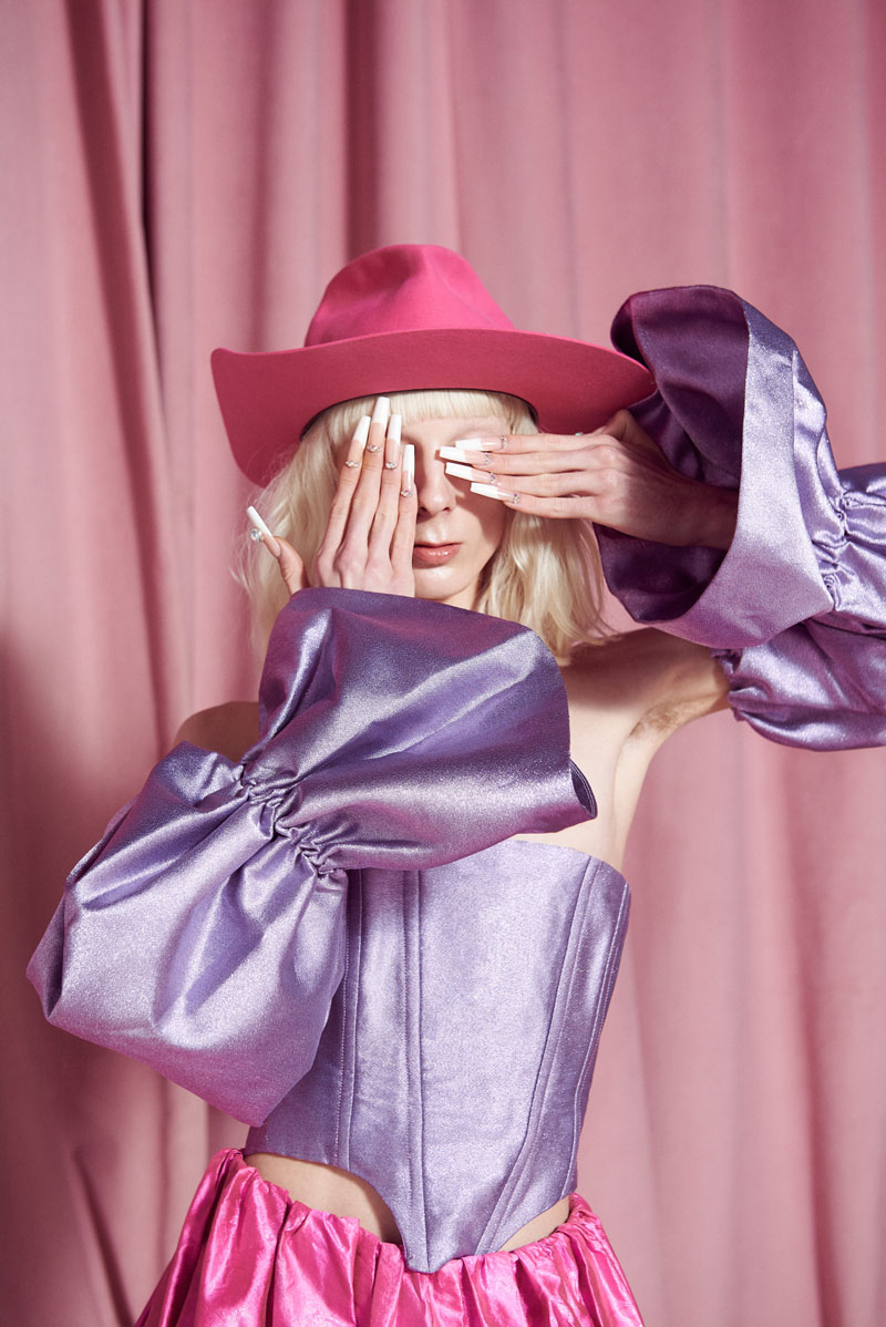 Arriba y abajo: Sombrero Gorka Gonzalez @gorkagonzalezbrand + Corset The Coolslaw @the.Coolslaw + Falda Miro Misljen @miromisljendesign Begemont @begemot_fashion + Zapatos Semperelozano @semperelozano.oficial