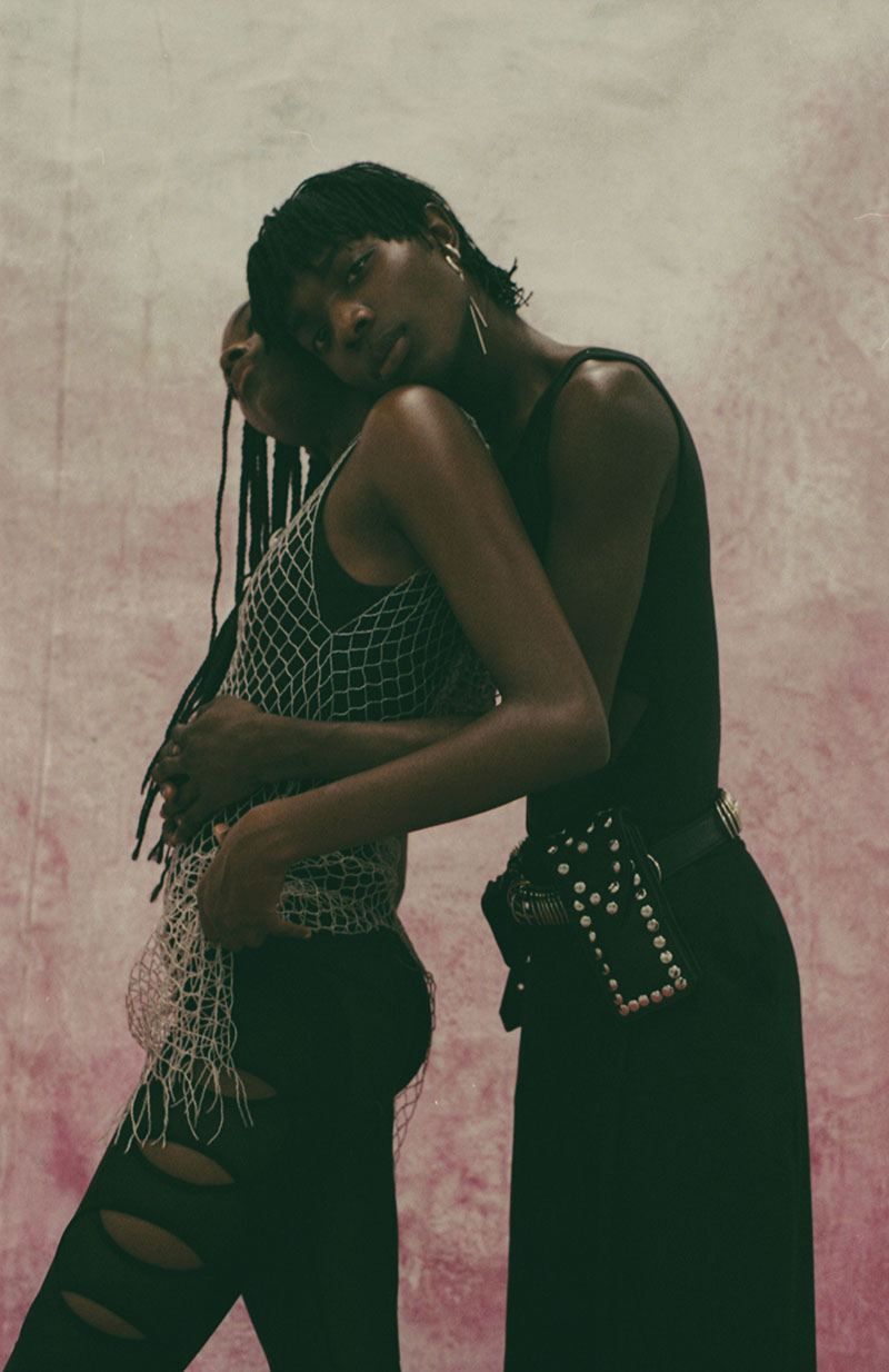 Loren lleva vestido EL BORDE + Legging TIEMPOS + Collar GUCCI + Ear cuff AVEC. Fernando lleva cinturón SILO + Tanga OYSHO + Pantalón EL BORDE + Conjunto Long ear cuff AVEC + Anillos XL & Botas camperas de piel Vintage.