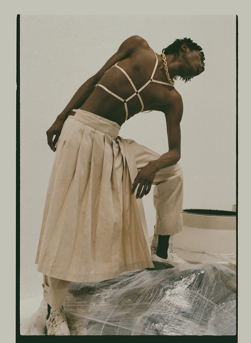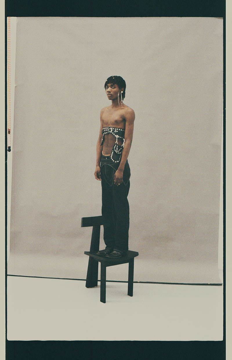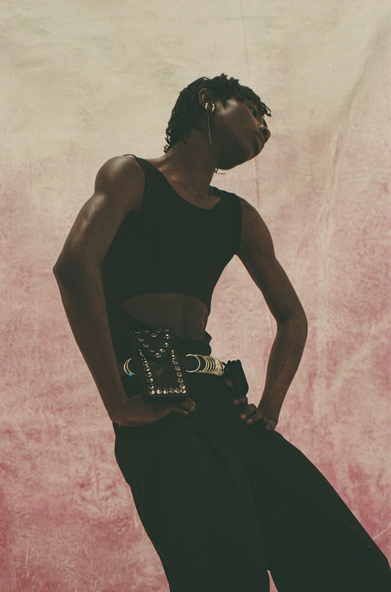 Fernando lleva cinturón SILO + Tanga OYSHO + Pantalón EL BORDE + Conjunto Long ear cuff AVEC +